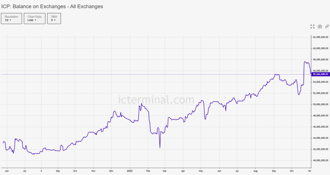 The $ICP supply on Exchanges is now at 55.3M ICP. 10.25% of the total supply is currently held on Exchanges. Data: @icterminal