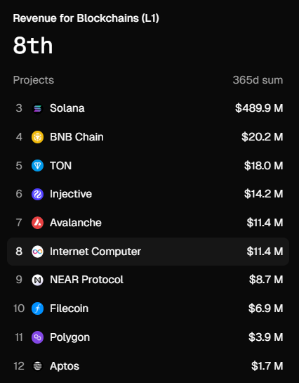 $ICP has officially caught up to $AVAX in yearly revenue (at a 3X lower Market Cap) 📈 Next up 🔜 $INJ Data: @tokenterminal