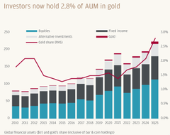 Gold now makes up ~2.8% of global investor assets (ETFs, futures, bars/coins)