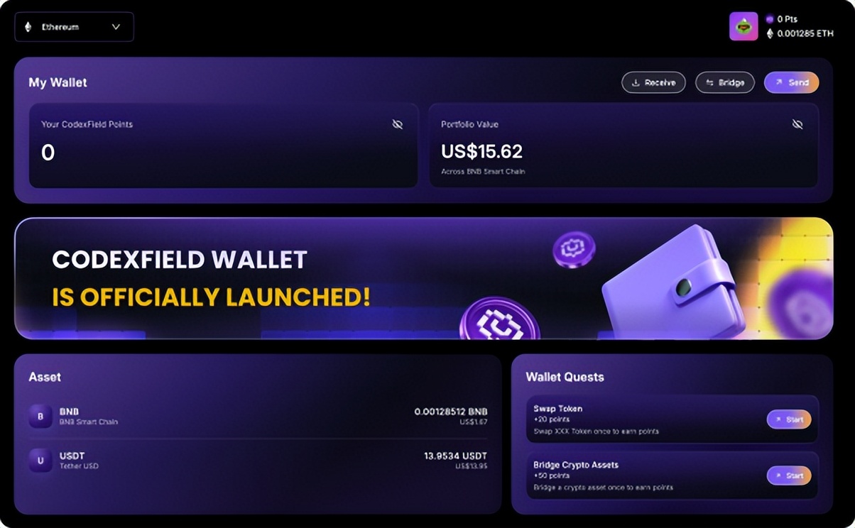 CodexField Wallet: A unified account layer spanning creation, assets, and intelligent collaboration.