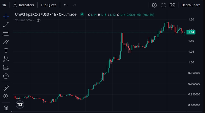 Our kpZRC-3 tokens- @ZircuitL2 S3 Points, skyrocketed!! 🚀 May 6th,➡️ price $.8 May 11,➡️price $1.19 ROI= 48.75% APR (you're a boss trader)= 3,558.75% 🤪 🧵👇
