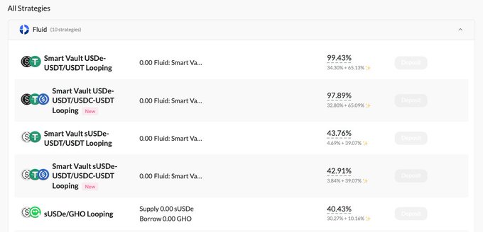 99% APY on $USDe for looping @0xfluid positions and selling @ethena_labs points via @RumpelLabs at a fair price to buyers overheard there's a whale that'll soon make a splash on the LP side you know the drill 🫡