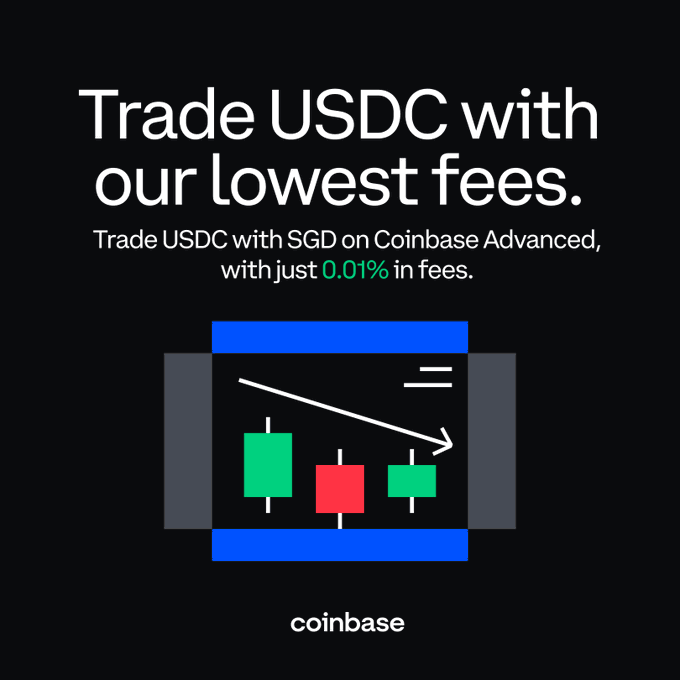 USDC trading just got cheaper. Trade USDC in SGD on Coinbase Advanced with just 0.01% in fees. Toggle to Coinbase Advanced in your Coinbase app to unlock low fees and powerful trading tools.
