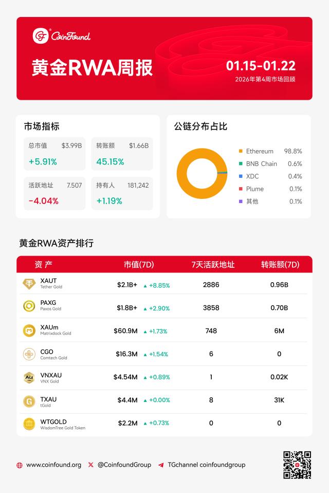 CoinFound RWA Gold Weekly Report (January 15-22): Market Value Increase, Transaction Volume Surge, Paradigm Shift in RWA Gold Asset Attributes