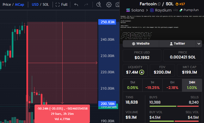 $FARTCOIN dropped by 20% after someone clipped the chart. Who must that be?