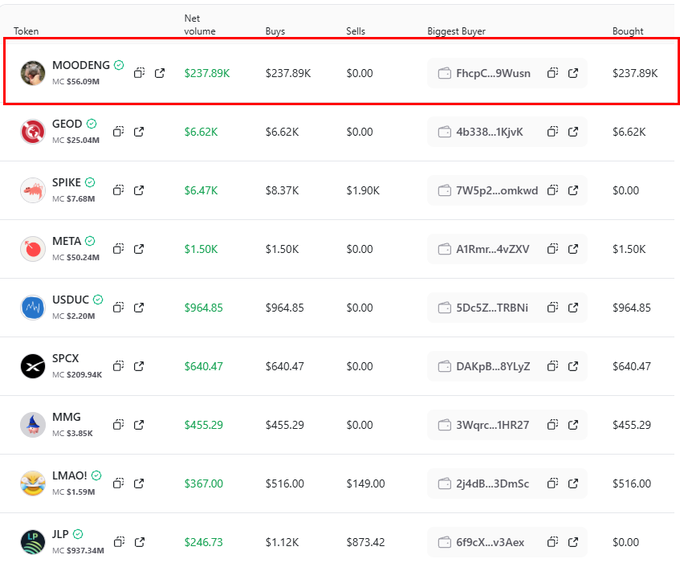 This could be the start of something interesting for $moodeng A wallet accumulated about $237.89K worth of tokens wallet: FhcpCWfb8KJsbrBGrvmCSRNLFNvo19w3WFPE9YF9Wusn