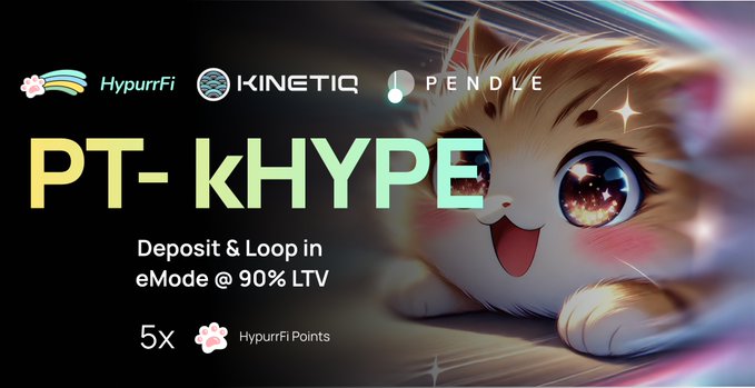 PT-kHYPE is now available in the pooled market. Trade $kHYPE yield on @pendle_fi, & borrow against the underlying with the PT-kHYPE token. Use E-mode to lever and loop with $HYPE or kHYPE, or borrow stables and other assets to participate broadly in DeFi on @HyperliquidX.