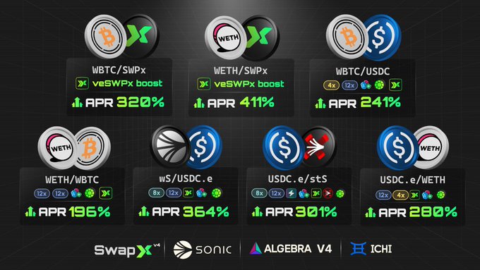 SwapX is cooking. APRs are up. And the market is rotating into quality. 🤌 Let’s talk about 3 assets leading the charge: $SWPx $WBTC $USDC (now native on Sonic) Here’s why this trio is worth your attention: