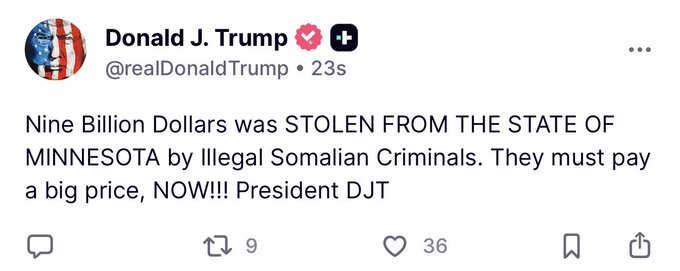BREAKING 🚨 President Trump DEMANDS illegal Somalian Criminals pay for the $9,000,000,000 that was stolen from Minnesota GET THEM ALL OUT