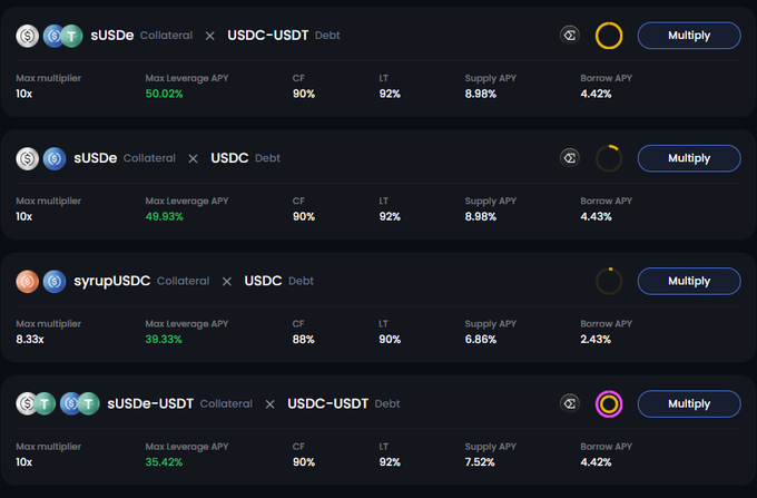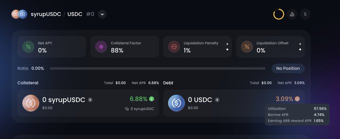 - @arbitrum DRIP incentives - low borrow rate (~4.4%) + solid supply rate (~9%) let you loop positions and leverage up to 50% APY, depending on the
