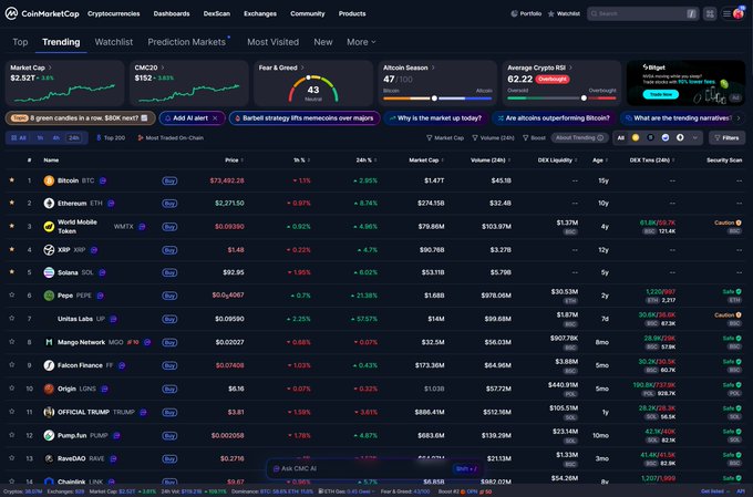✅ Utility. ✅ Trending. ✅ Middle of the top pack. The ticker is $WMTX twitter.com/wmchain/status/203...