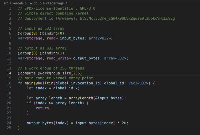 Deploy custom kernels (shaders) as GPU compute sidecars to your ao process.