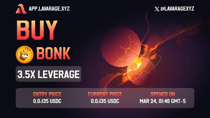APE’d $Bonk at 3.5x leverage on http:/app.lavarage.xyz/?ref=YU... 🚀 @lavaragexyz #solana CA: DezXAZ8z7PnrnRJjz3wXBoRgixCa6xjnB7YaB1pPB263 Lets start this @sns perks going #Lavarage_ShareYourTrade
