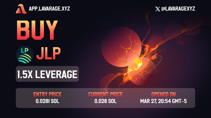 APE’d $JLP at 1.5x leverage on http:/app.lavarage.xyz/?ref=YU... 🚀 @lavaragexyz #solana Okay here we go again. @sns #Lavarage_ShareYourTrade CA: 27G8MtK7VtTcCHkpASjSDdkWWYfoqT6ggEuKidVJidD4