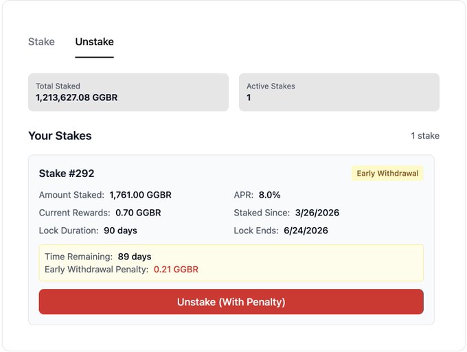 I have staked around $8k worth of gold through @goldfishggbr and i love it tbh I went with 90 days lock up version which gives 8% yield I'm chill in my position as its literally gold, not any memecoin or anything so yeah I will be holding it till it gets unlocked