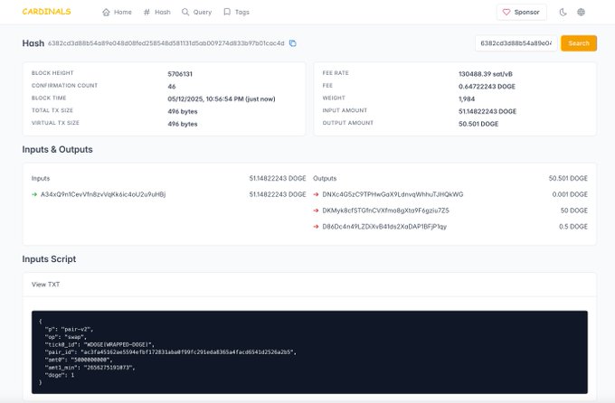 The community block explorer has been updated. By entering the hash, you can query the details on the chain, including Cardinals protocol data. explorer.dogeuni.com/hash #Dogeuni #explorer #Cardinals #DOGE