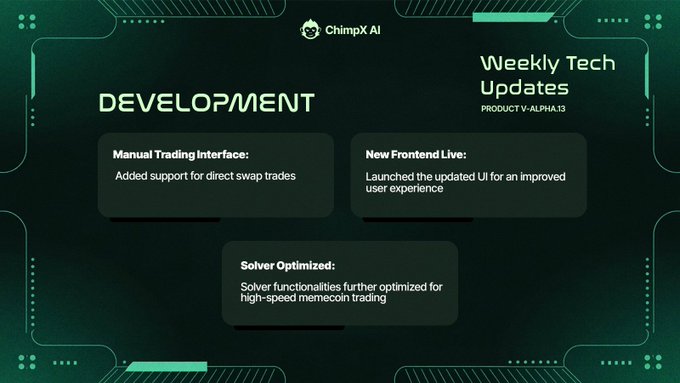 What’s brewing at ChimpX this week? 🔍🐵 Smarter AI, major upgrades & smoother trades — all crafted to elevate your #DeFi game. Curious? 👀 Dive into this week’s update: infographic + full blog breakdown. 👉 blog.chimpx.ai/weekly-tech-upd...…