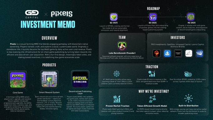 We’re excited to share another strategic investment by GG Capital — Pixels. The DAO has acquired $PIXEL, the native token powering the Pixels ecosystem. @pixels_online @whatslukedoing 📄 Investment memo below: