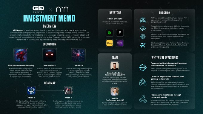 We’re excited to share another strategic investment by GG Capital — NRN Agents. The DAO has acquired $NRN, the native token powering the NRN Agents ecosystem. @NRNAgents @aiarena_ 📄 Investment memo below: