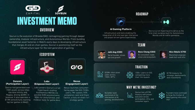 We’re excited to share another strategic investment by GG Capital — Sovrun. The DAO has acquired $SOVRN, the native token powering the Sovrun ecosystem. @SovrunOfficial @Renz_SOVRUN 📄 Investment memo below: