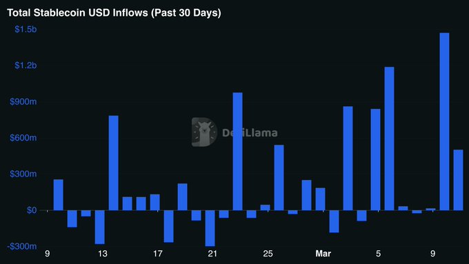 Money is entering the onchain economy again. Total stablecoin inflows have surpassed $500M for 4 out of the past 7 days.