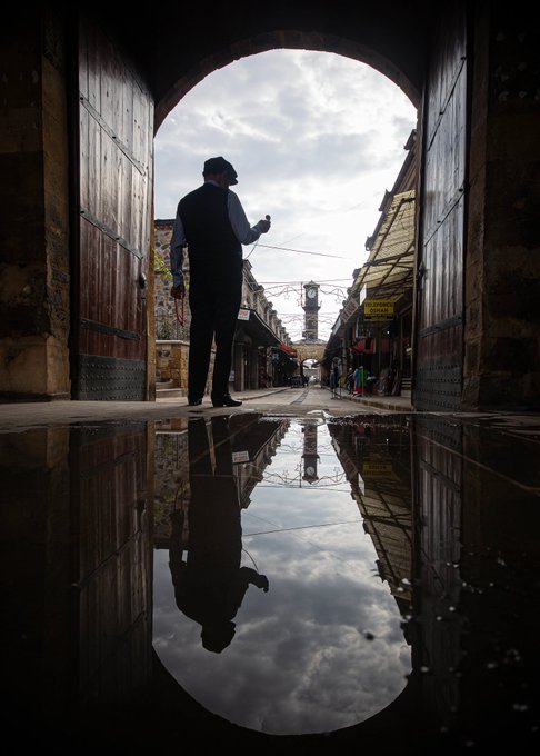 Framed by an old gate, a solitary figure stands between past and present — mirrored perfectly in the water below.