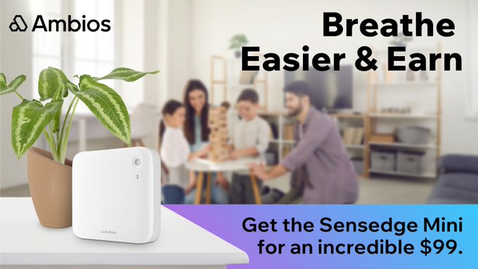 1/3 🎉 Happy Airdrop Ambifam! While you're celebrating your rewards, remember you can also celebrate cleaner air! Our IN5 and Sensedge Mini sensors are still available for an incredible $99 this May. Buy now: ambios.network/shop