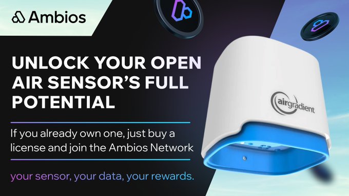 1/3 Already own an Open Air sensor? You're one step ahead! 💨 You can seamlessly onboard your device to the Ambios Network and start earning rewards.