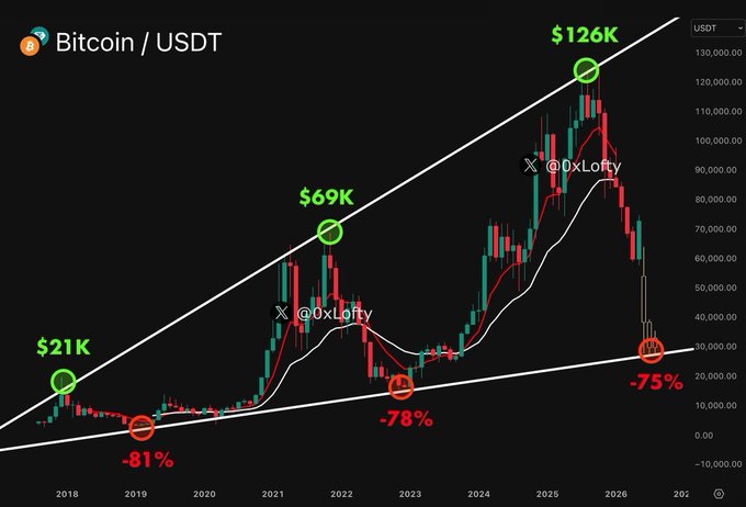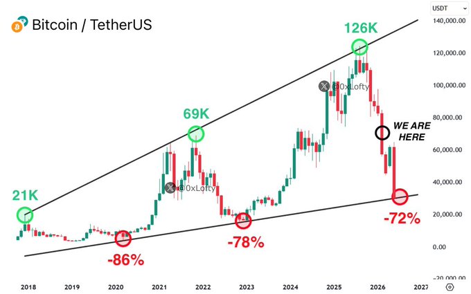 $BTC is preparing for a massive dump to $34,000 next week. The final Bull Trap of 2026 is almost over, and we’re only halfway through the bear market. Are you actually prepared for Bitcoin to go even lower?
