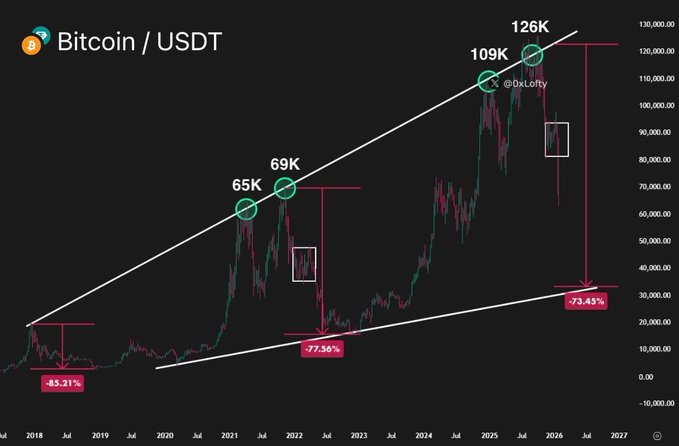 Bitcoin is only halfway through the 2026 Bull Trap. This cycle is the EXACT copy of the 2022 Bear Market. If the pattern holds, $BTC will dump to $30,000 in April. Do you think you’re actually prepared for this scenario?