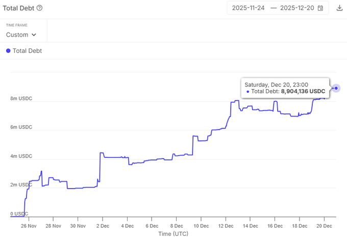 The total amount of USDC borrowed on @inkonchain reached a new all-time high of $8.9 million on Saturday 🔗defirisk.sentora.com/metrics/i...…