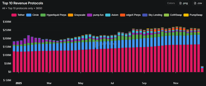 Stablecoins are DeFi’s clearest revenue engine, consistently dominating the top revenue rankings. T hat said, Hyperliquid and http:/Pump.fun stand out as high earners outside the stablecoin niche.