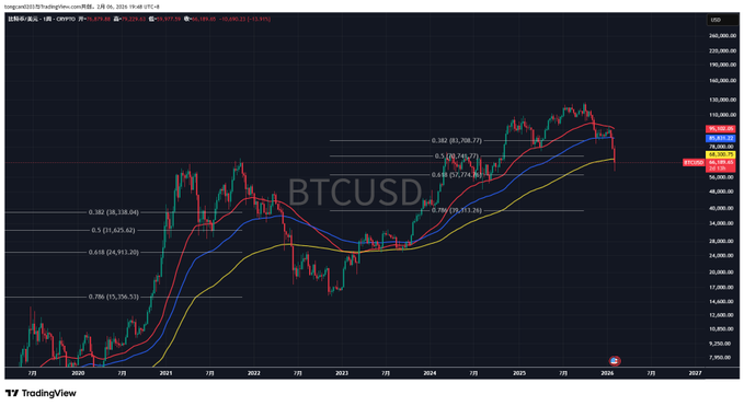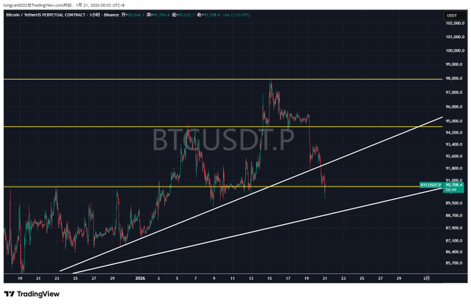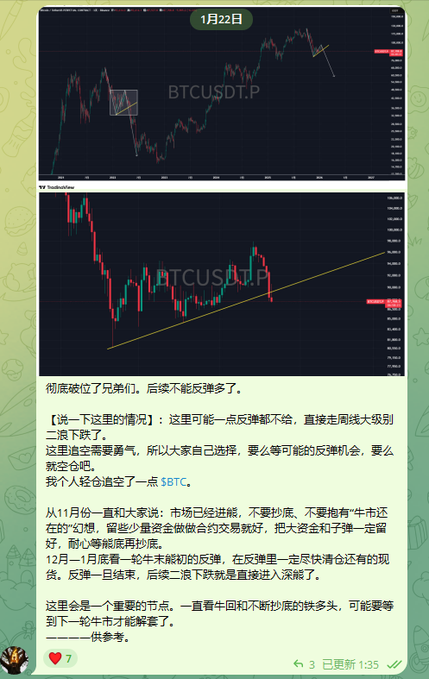 On Jan 22nd, after $BTC broke below the daily and 3-day support, I decisively went short and opened my initial position. On Jan 25th, I reminded the group again and posted on Twitter as well. The major trend was already broken here—perfect time to build shorts in the chop zone and look for further downside once weak consolidation continues.