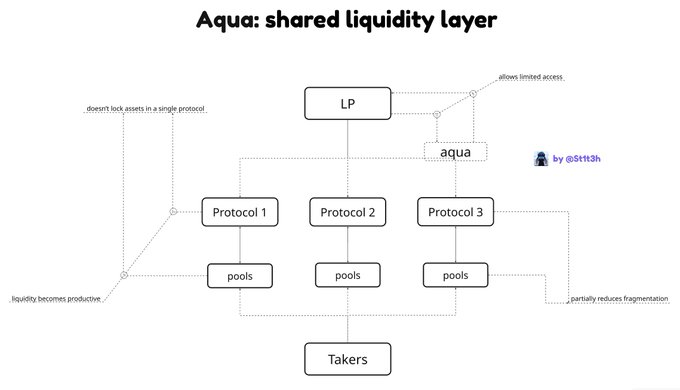 Yield in DeFi while keeping assets in your wallet. Aqua many users have been using the DeFi we used to for a long time, me included, with the AMM mechanism we familiar with but this mechanism has key issues. the main one is idle capital after LP assets are locked in pools, 80-95% of the liquidity in a pool isn’t used for its core function, all the real work is done by 10-20%, the rest of the assets just shape the price related drawbacks ◆ locking assets in pools. it doesn’t allow assets to be used for other purposes and creates security risks, protocol hacks and loss of funds ◆ fragmentation. because funds are locked in a single pool or protocol, DeFi protocols are forced to compete for liquidity by offering extra rewards and different marketing incentives the 1inch project released the Aqua whitepaper, which introduces a new type of shared liquidity layer this is a new method that brings in a set of innovations that fix these AMM vulnerabilities in Aqua, an LP doesn’t provide assets to lock them in pools, instead they provide limited access to their assets from their wallet to pools meaning when an LP wants to interact with Aqua, they simply grant limited access to their assets, without locking them, at the same time to multiple protocols, pools, and other opportunities Aqua itself doesn’t store assets, it stores virtual balances to calculate the liquidity formulas this makes it possible to eliminate several vulnerabilities at once: improve asset security, funds stay in the wallet and not in a shared pool, use multiple strategies instead of a single pool, and increase efficiency key features of Aqua: ◆ increase asset security by keeping funds on LP wallets ◆ partially solve the asset fragmentation problem ◆ use a wider range of tools to build yield logic ◆ boost capital efficiency despite solving some AMM problems, Aqua has its own set of vulnerabilities LP behavior risks, an LP can revoke access to assets, which creates extra challenges for liquidity calculations strategy risks. more accessible functionality increases the complexity of building effective strategies, which raises the risk of losses can’t say that Aqua is better than AMM, since it has its own risks, it’s more of a tool that lets you choose based on your strategy and evaluate risks and opportunities in each case I also continue to use @katana, which has an AMM model, but not the classic version