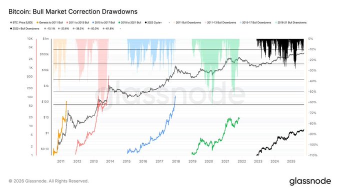 Bitcoin drawdowns this cycle remain shallow compared to past bull markets🚨 The correction looks more like a mid-cycle reset than a full trend reversal.