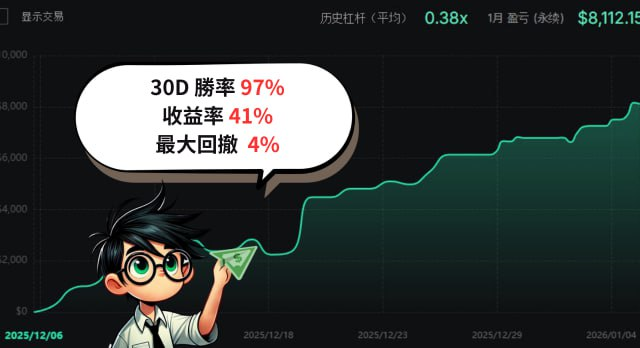 Hyperliquid Copy Trading Diary - High-Win-Rate Short-Term Sniper 0x3e8ee20d67c89db4a2df316049f9d11d7e1f2979 This is a super smart money strategy combining high-frequency scalping and extreme risk control. Main Trading Style: 1️⃣ Extremely Short Holding Periods and High-Frequency Order Splitting: Average holding time is only about 3 hours. Trading frequency is high, with small individual trades but many trades, aiming to capture small price differences. It doesn't pursue large swings, but rather accumulates small wins into large wins. 2️⃣ Flexible Switching Between Long and Short Positions and Mainstream Cryptocurrency Preferences: No fixed long or short direction, rapidly rotating between SOL, BTC, and HYPE. This indicates that its strategy is based on short-term technical analysis or capital flow signals. Choosing highly liquid mainstream cryptocurrencies ensures the efficiency of its high-frequency strategy. 3️⃣ Extreme Risk Aversion and Disciplined Closing Positions A win rate of up to 97.22% and a maximum drawdown of only 4% are its core characteristics. It almost never tolerates floating losses; this is a strict discipline of "taking profits when they appear and exiting when they're losing," sacrificing potentially large profits for an extremely smooth equity curve. Copy Trading Suggestions: 1️⃣ The maximum margin multiplier for copy trading should not exceed 2.0 times. 2️⃣ Set a stop-loss order of 10% of the position size and 10% of the account balance. Super Smart Money ⭐️⭐️ 30D Return Rate: 41.29% 30D Drawdown: 4% 30D Win Rate: 97.22% 30D Number of Trades: 36 30D Average Holding Time: 2h 48m 59s