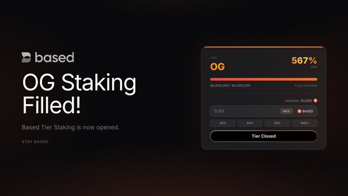 In less than 3 hours, ~20% circulating supply of BASED tokens has been staked and locked. Thanks everyone for showing up! The Based tier staking pool has opened up as well. Stake: basedfoundation.com/genesis Stay Based.