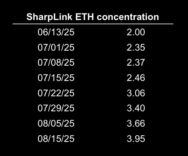 As retail investors, all we can really ask for is transparency. If $ETH holdings are growing but $ETH concentration is falling, you end up with a dilutive effect vs accretive. $SBET has been fully transparent since the beginning, going above and beyond just ETH concentration. That’s why they are the #1 DAT imo and the ticker is $SBET. twitter.com/maxxTFSA/status/19...