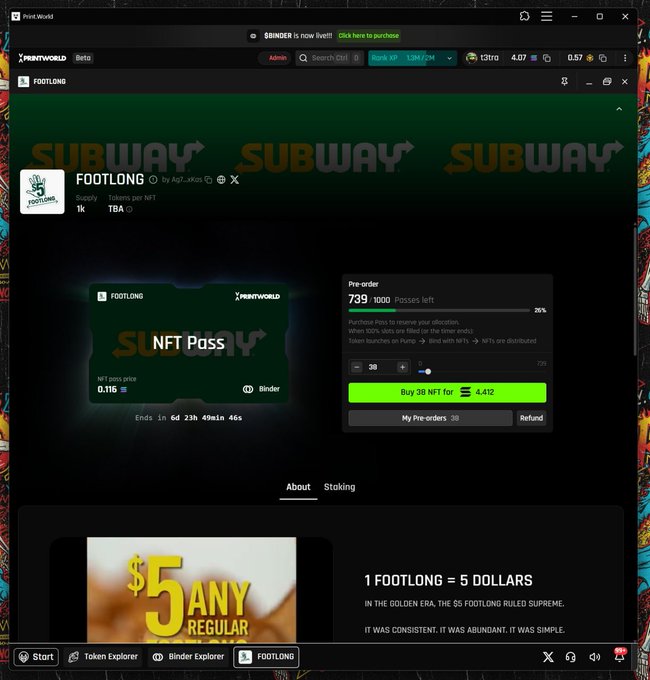 The $BINDER tech is super interesting & novel. I think people have not put this together yet on what it is & what it offers & the opportunity to massively change the trenches as a proper PF layer 2. Let me give you an example, using footlong, which launched today. You have an image & idea for a meme. You upload it to binder & then that image creates a whole nft collection for like .1 sol. People then can bid & mint these nft. Which you pay for with the native coin token. And then it binds the coins to the nft, You can then burn the nft and take the coins out & sell them for sol. Or sell the NFT or just hold it. So it locks up coins as well. This NFT "mint"/coin launch effectively works as a presale, when it is sold, the sol is taken to PF & the coin is launched. So everyone in the original mint is buying at the same price & same value. This basically gets rid of snipers & bundlers to a large extent. This is just one example of how you can use it, they have created a new token standard & offer staking & vesting schedules for your coins as well. Then when you look at $binder (Which has the fly wheel of everycoin launched feeding into it), this could be a mega runner. The coin is insanely supply controlled & Tetra also wants to win the hackathon & fix the ecosystem. If they can get some great runners & community positive sentiment towards them & help feed the trenchers. Binder could easily be a 9 figure runner. Similar to how believe went crazy I look it as a great team + new novel interesting tek + great supply control + fly wheel & i think this coin COULD see a run past 9 figs. It already hit 20mil today. With 80% at least already locked up. Its at 2mil with only 750 holders. I think we are super early & i think @T3tra333 is cooking up something disgustingly bullish. Im always willing to support people trying to make our ecosystem better & healthier long term. BeFtLwLtS9Rva12KrHKRMY1H5WoeM1Y2ULMnNJKopump