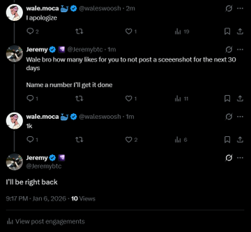 1,000 likes on this post and @waleswoosh won't be allowed to post screenshots for 30 days This is your chance to save crypto 🙏