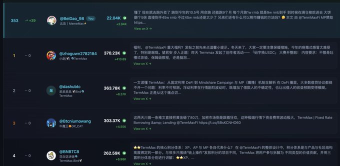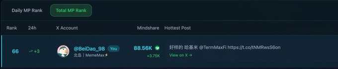 Brothers, I'm completely out of steam! I don't even know what to write anymore. This @TermMaxFi post is too late. I can't catch up at all. I don't even have a fraction of what's in front of the front. I can't catch up, I simply can't. And the market is absolutely terrible. Zama, which I was hoping for, has completely crashed. I've practically given up and left it there. I haven't been tweeting much lately. But I've been trying to get into Binance Square. But those squares are really hard to get right. Each post only earns me a pitiful 10-odd points. I'm still in the exploratory stage. Right now, my only hope is that Mememax will do something next, and that Kaito's studio will at least give me something. twitter.com/BeiDao_98/status/2...