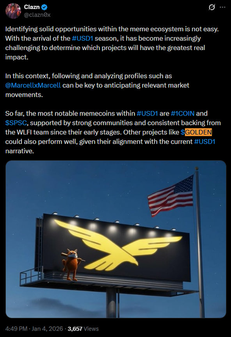 We’ve sent 4,342,951.69 (0.43%) of the $GOLDEN total supply to the @worldlibertyfi wallet.