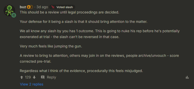 Every time @serpinxbt does one of these marketing stunts, it removes credibility from Ethos From when he copy-pasta review bombed 100+ KOLs simply for having their name on a list, which is entirely out of their control, to now slashing @Hydraze420 for being guilty by association to take away his "exemplary reputation" on the platform Feels like he'll throw anyone under the bus just to get attention to his platform As for the Hydraze slash, it failed Because it was under 40%, Serpin would have lost 320 points, stripping him of his #1 rank (on his own platform) However in the final hours, despite the loss being a lock, a few people changed their vote from defend to slash, pushing it over 40%, nulling any point-loss From what I've been told, Serpin reached out to a few people to get them to vote in his favor and protect his reputation, basically manipulating his own platform One that stands out is Buz (image below) He voted 3 days ago, writing about the slash not making sense So why did he decide the switch to slash in the last moment? IMO Serpin deserved the 320 point loss for this I know he'll say "if you feel that way, slash me" but the odds of a slash on the founder of the platform passing are near 0 I also don't care what someone's Ethos score is, so this isn't my war to fight P.S. I like the platform and think it's a good idea (and I want my airdrop), but this kind of stuff makes me not want to use it Focus on score integration and growth, not ct drama and clout chasing twitter.com/CryptoGorilla/stat...