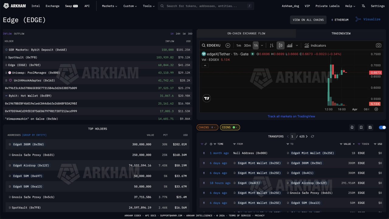 ✔️Summary of the Reality of the EdgeX Airdrop: "The Truth Behind the $195 Million" On-chain tracking results suggest that a significant portion of the massive airdrop claimed by EdgeX was allocated to internal stakeholders and partners rather than general users. 1️⃣ Summary of Key Figures Public Airdrop Size: $195 million ($195M) Actual Partner/LP Allocation: 14% ($94.6M) of the total airdrop went to 'Partners and Liquidity Providers (LPs)' rather than general users. (Effectively, this represents half of the airdrop's value) Developer Controlled Portion: 69.5% of the total supply remains locked in wallets that received it directly from the initial developer wallets. Undistributed Portion: 7% of the supply still remains in the airdrop wallets, posing a risk of further dumping. Actual Circulating Supply: The actual circulating supply currently released into the market is only about 9.5% of the total. 2️⃣ Issues Based on On-Chain Analysis (Intellectual Sparring) Lack of Transparency: EdgeX belatedly admitted that 14% was partner volume only after on-chain detectives identified and interrogated new wallets exhibiting similar behavioral patterns. Potential Selling Pressure: Wallets holding 69.5% are highly likely to be owned by Market Makers (MMs), which are a 'time bomb' capable of being deposited into exchanges at any moment to trigger a price crash. Circulating Supply Distortion: It is highly probable that the market capitalization is inflated while the actual circulating supply is less than 10% (Low Float, High FDV structure). ❗️Caution: MMs are aware that their wallets are already heavily exposed, so they may send tokens to CEXs as bait. Source