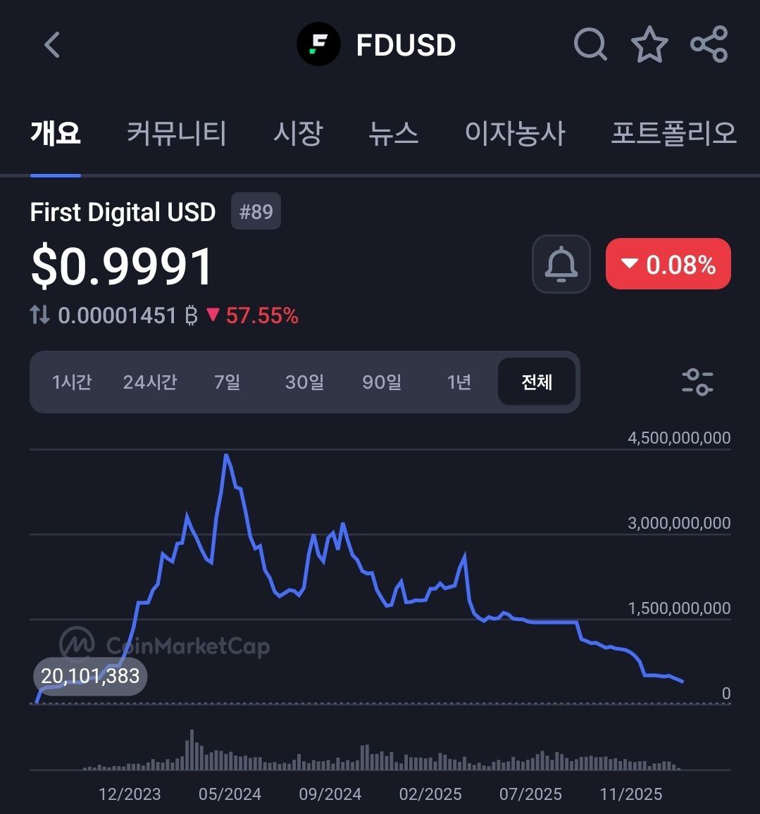 FDUSD, once supported by Binance, has seen its issuance drop from 4.5B to 0.4B. The recent emergence of USD1 and U has led to a loss of value.