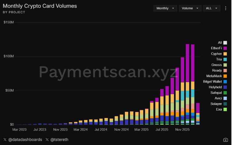Monthly Cryptocurrency Card Volume (Neobank)