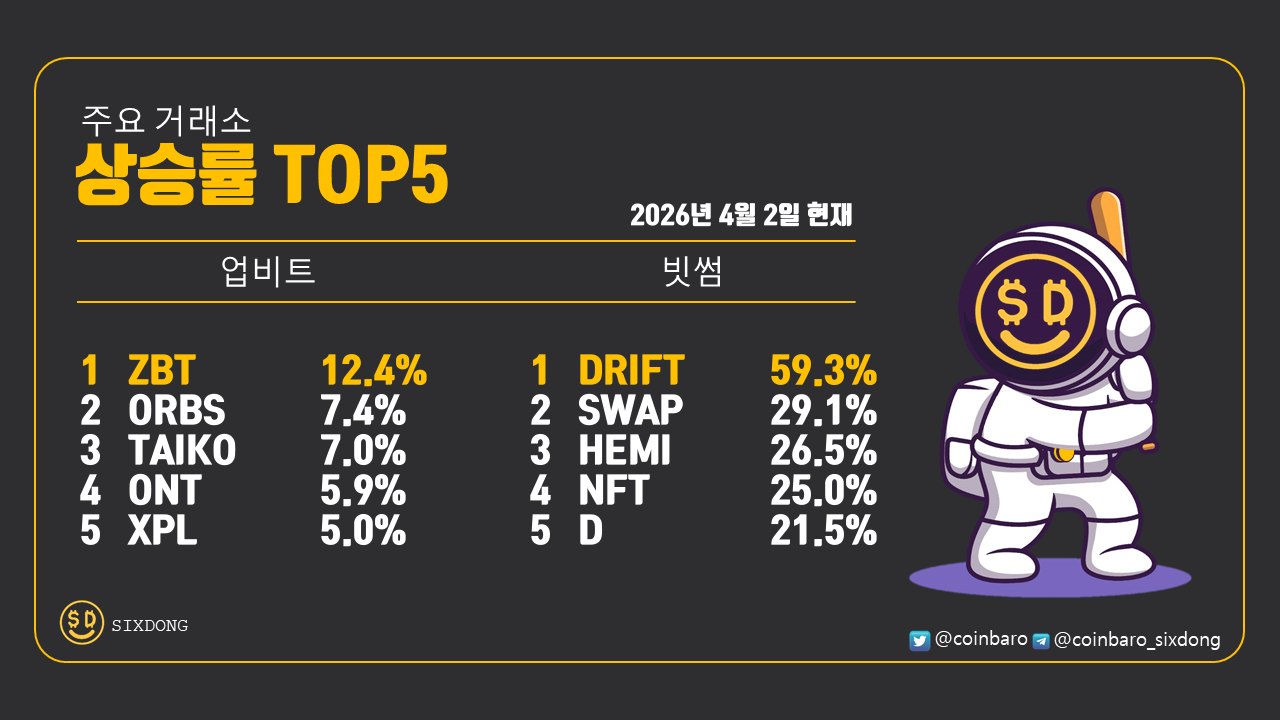 🔆 Top 5 Major Exchange Gainers Every Day at 5 PM Upbit: ZBT, ORBS, TAIKO, ONT, XPL Bithumb: DRIFT, SWAP, HEMI, NFT, D 🐸 wavis signal news 📣