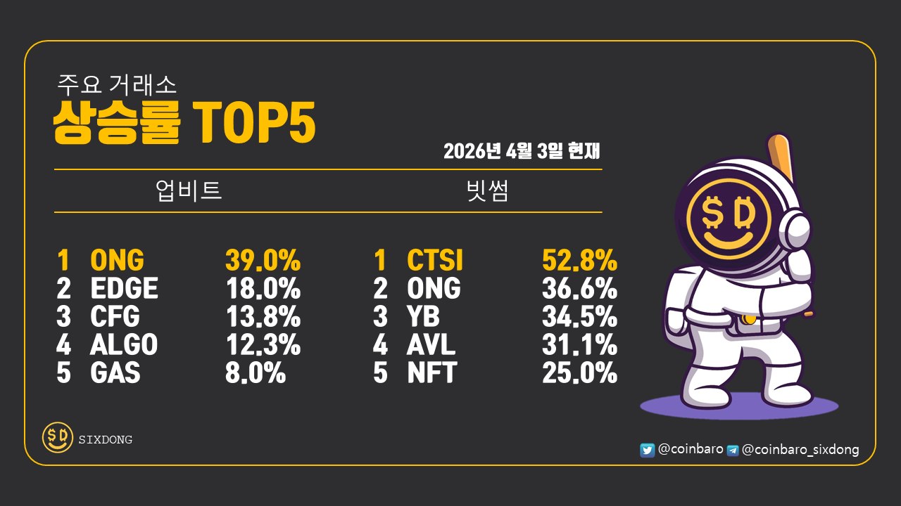 🔆 Top 5 Major Exchange Gainers Every Day at 5 PM Upbit: ONG, EDGE, CFG, ALGO, GAS Bithumb: CTSI, ONG, YB, AVL, NFT 🐸 wavis signal news 📣