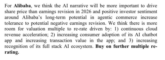 JPM on $BABA: AI narrative drives the re-rate. Buy on further multiple expansion.