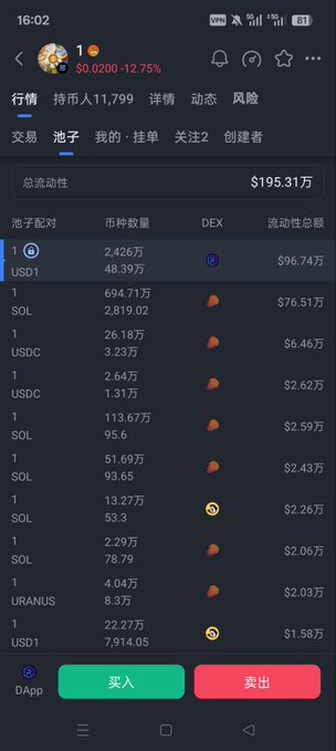 Observe the pairing ratio: If the SOL quantity > the token quantity (as shown in some pools with a large SOL quantity), it indicates that funds are flowing in, possibly indicating an accumulation phase;